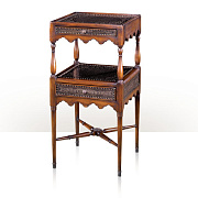 Гостиная. Площадь - 20,9 м2. Гостиная наполнена штучными предметами мебели. Овальный столик Theodore Alexander выполнен в стиле Луи XVI из массива красного дерева. Хрустальная вставка столешницы декорирована бронзовой каймой.