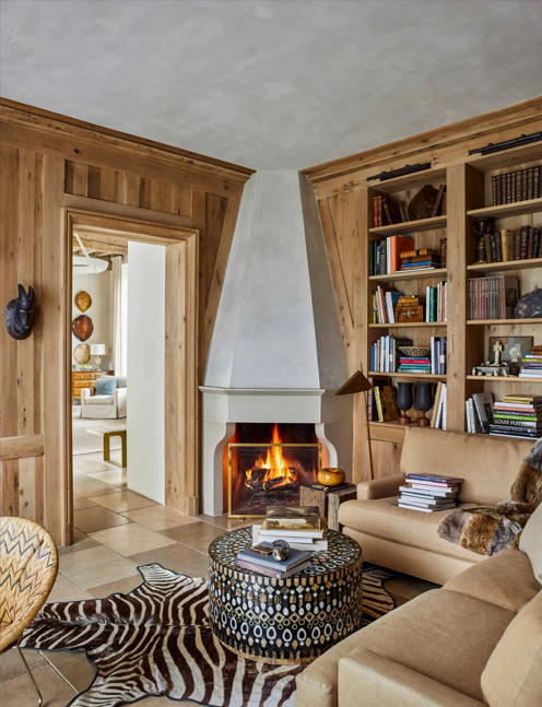Библиотека вокруг камина. Особое очарование имеет библиотека, обрамляющая камин. Камин сам по себе — символ уюта, центр дома, его сердце. Книги, расположенные вокруг него, усиливают эту метафору: словно мудрость и огонь заключают союз, даря тепло и свет одновременно. Стеллажи могут окружать камин симметрично — двумя строгими колоннами, подчеркивающими гармонию. Либо мягко разливаться по бокам, создавая впечатление, что книги словно согреваются пламенем. В таких интерьерах чтение становится почти ритуалом: огонь потрескивает, страницы шелестят, и дом наполняется особым, глубоким спокойствием. Есть и практическая сторона. Библиотека у камина превращает пространство в центр притяжения: здесь приятно собираться с друзьями, вести долгие разговоры, читать детям вслух. Это тот случай, когда интерьерная композиция выходит за пределы декора и становится образом жизни.