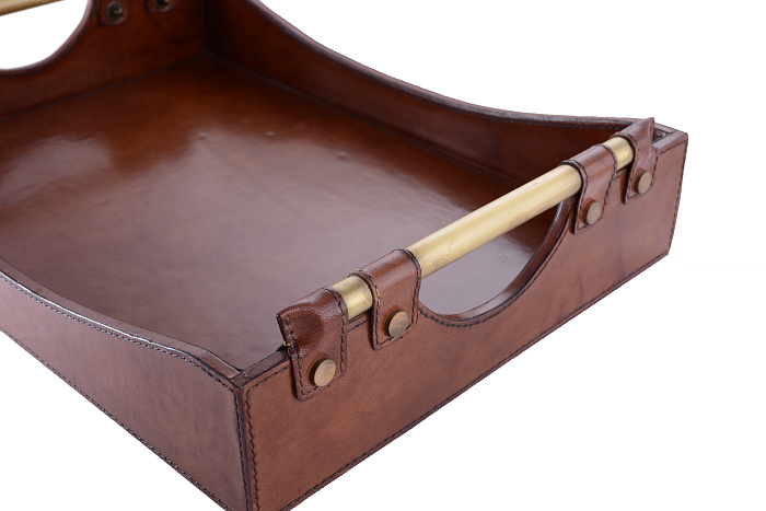 Поднос выполнен из натуральной кожи. Станет украшением библиотеки или прекрасным подарком настоящему джентльмену.
