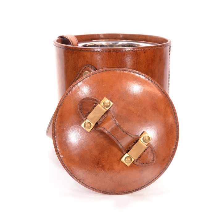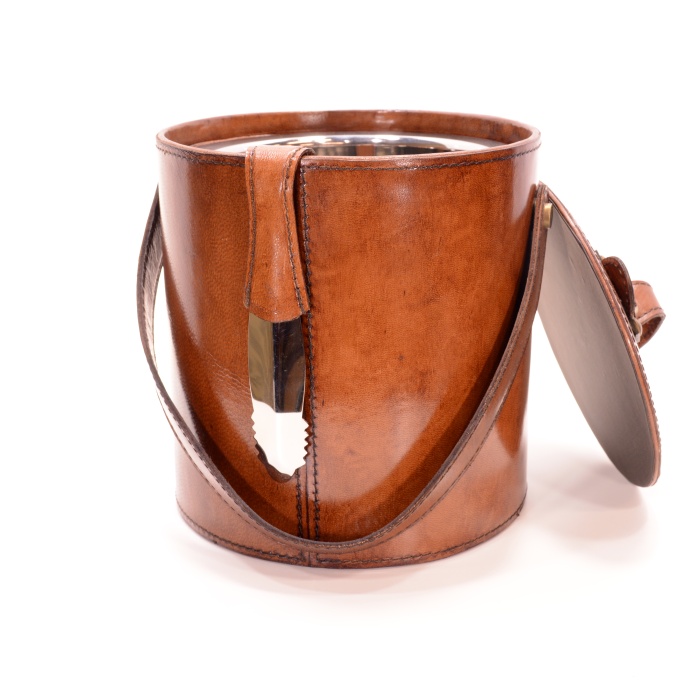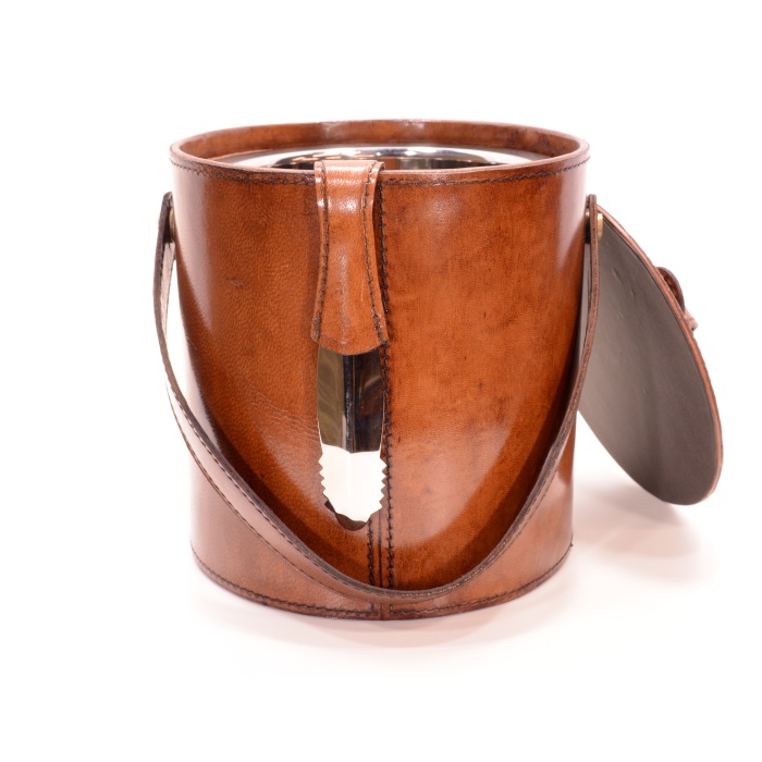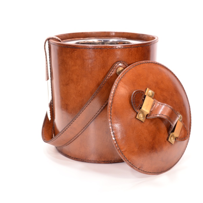 Ведро для льда декорировано натуральной кожей. Станет украшением библиотеки или прекрасным подарком настоящему джентльмену.