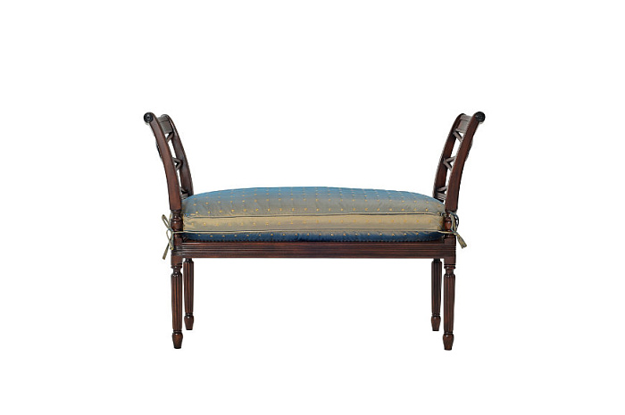 Великолепная банкетка серии Essential в стиле регентства выполнена из розового дерева. Боковые изогнутые панели декорирована перекрестными элементами. Сиденье сшито из шелка. Банкетка стоит на четырех рифленых ножках, сужающихся книзу.
