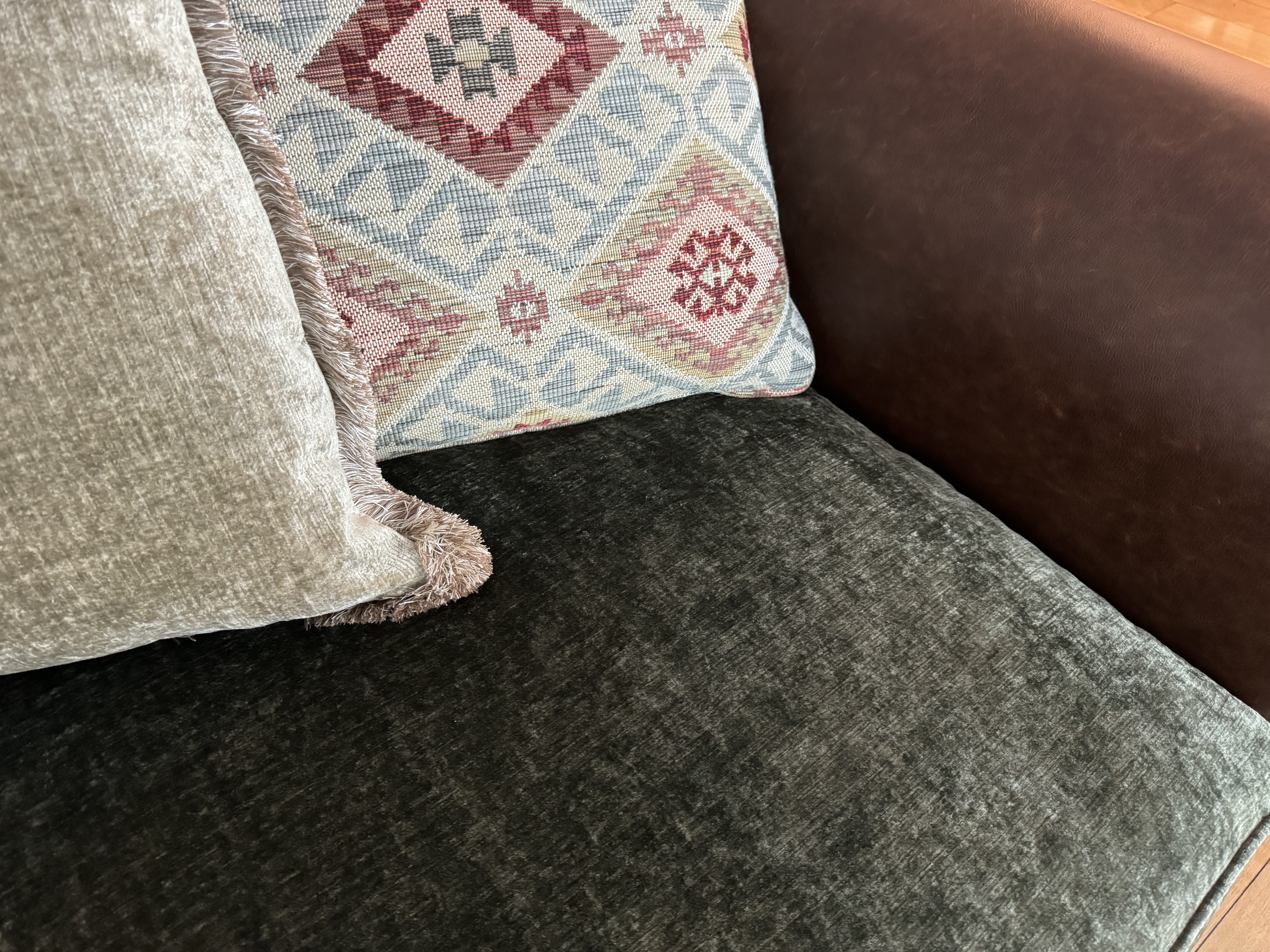 Диван состоит из двух частей, которые фиксируются между собой. Кроватный механизм отсутствует. В комплект дивана входит 5 подушек. Дополнительные подушки можно приобрести отдельно.