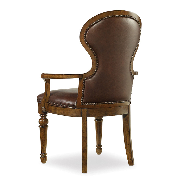 Стул выполнен из массива твердых пород древесины, декорирован шпоном ольхи; сидение и спинка выполнены из натуральной кожи.