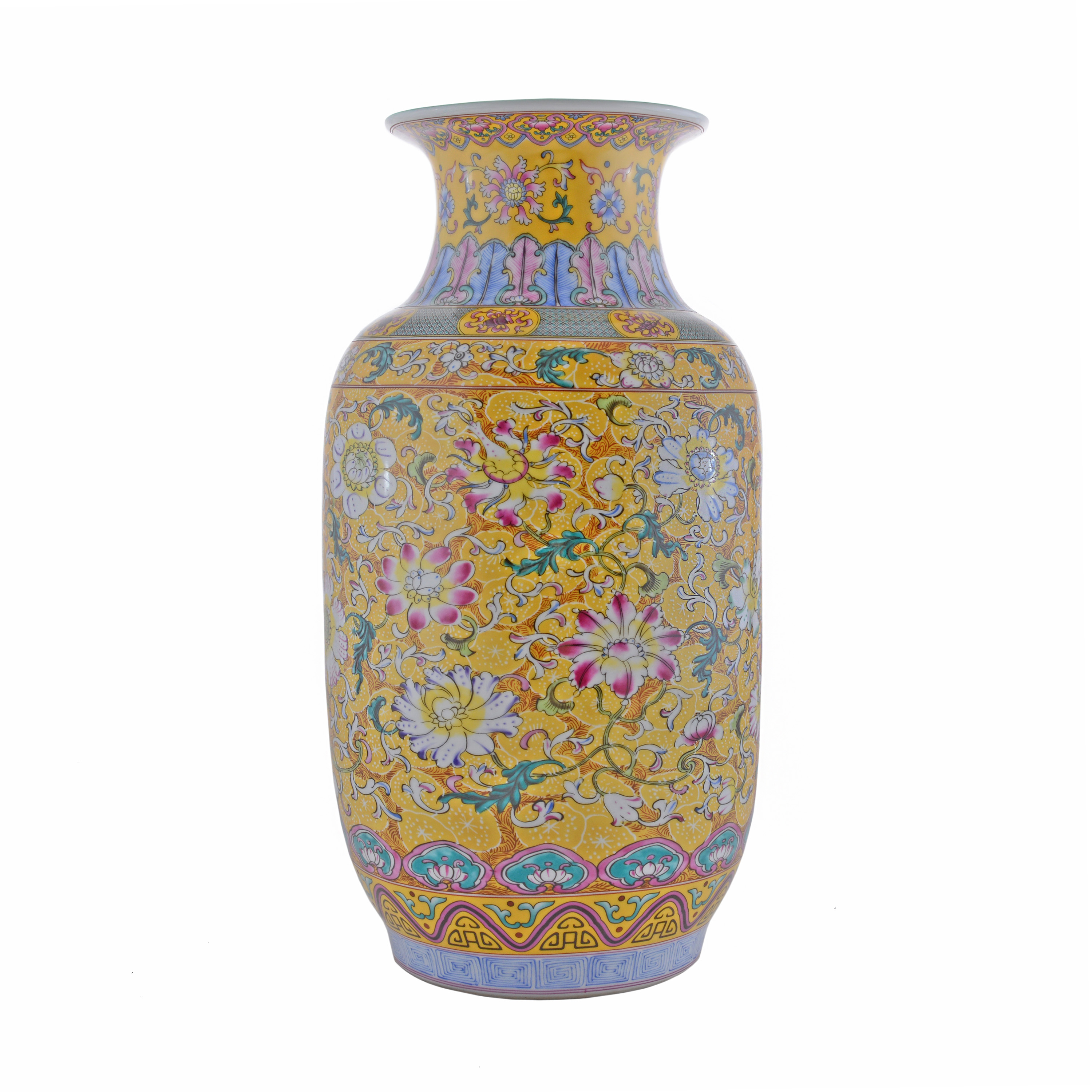 Фарфоровая ваза украшена ручной росписью в традиционном китайском стиле.
