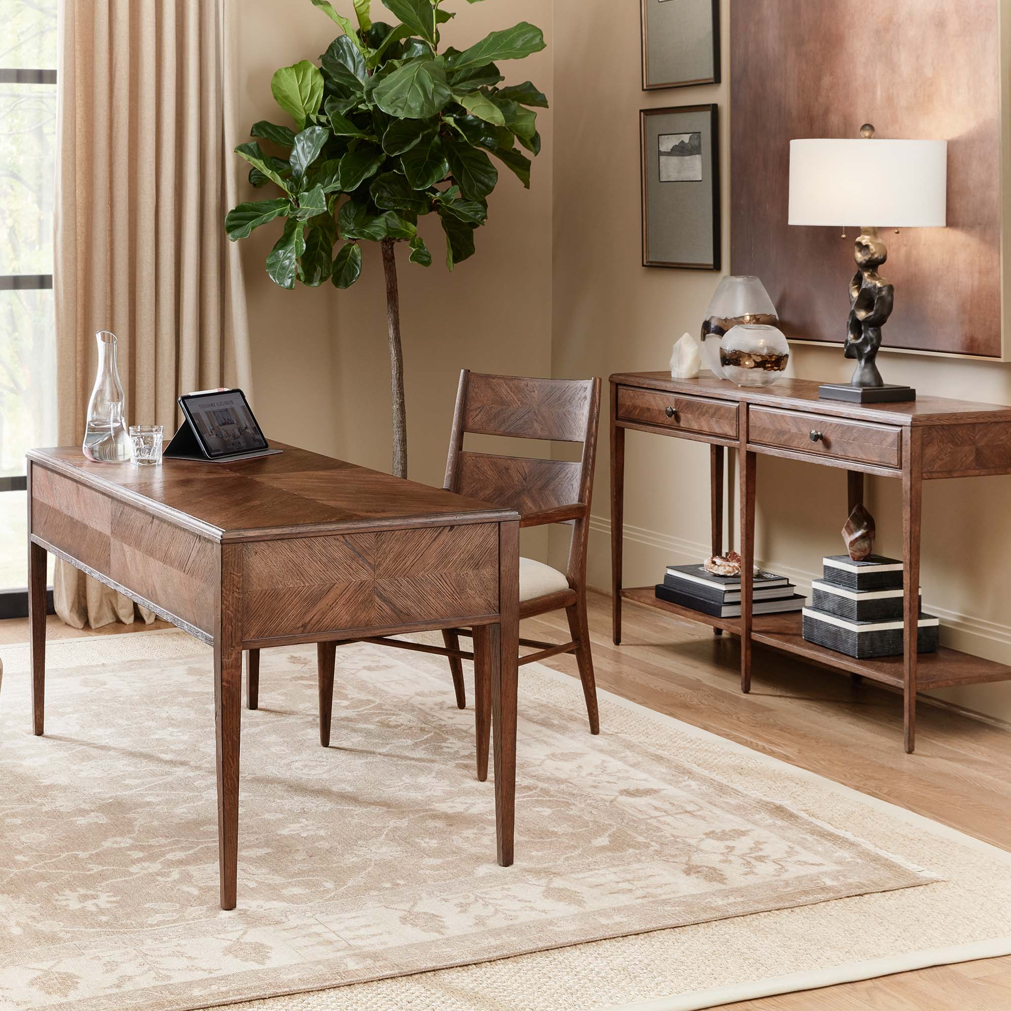Коллекция "Нова" появилась в нашей линейке внезапно, подобно сверхновой звезде. Предметы этой новой коллекции насыщены оригинальными дизайнерскими решениями, начиная с неповторимых, созданных вручную паркетри со звездообразным и шевронным начертанием, или шпона с необычным рисунком и заканчивая изысканной фурнитурой с отделкой под патинированную бронзу, отлитой вручную на собственном литейном производстве компании Theodore Alexander.