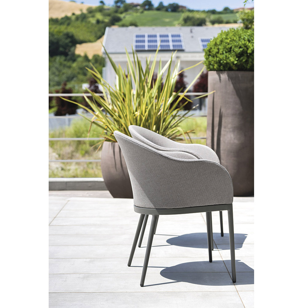 Мягкие изгибы очерчивают спинку и подлокотники кресла Clever. Легкое и элегантное, это сиденье является идеальным выбором для украшения открытой площадки ресторана, веранды или обеденной зоны на открытом воздухе частного дома.