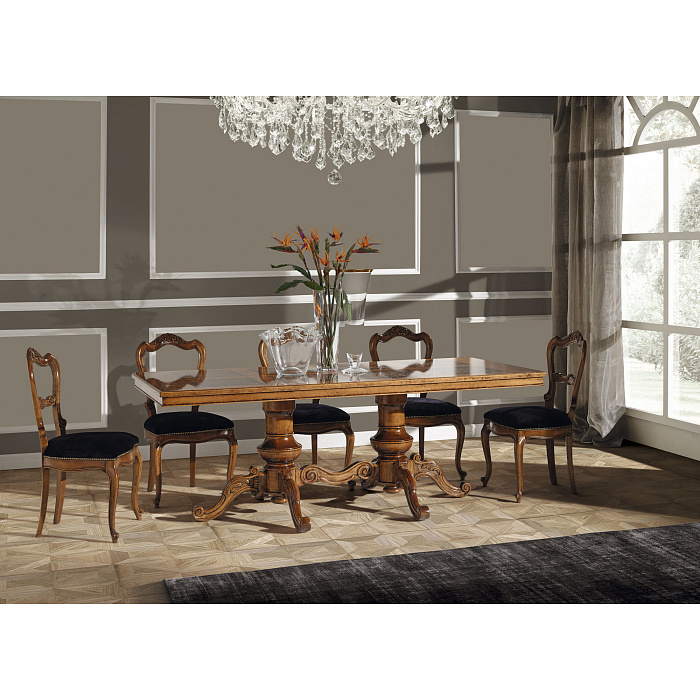 Прямоугольный обеденный стол из коллекции Verona выполнен в классическом стиле и украшен искусной инкрустацией. Стол прекрасно сочетается со стульями (арт. BV5343).