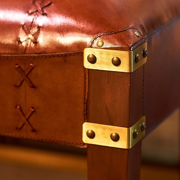 Табурет выполнен из металла и натуральной кожи. Станет удобным дополнением для кабинета и прекрасным подарком настоящему джентльмену.