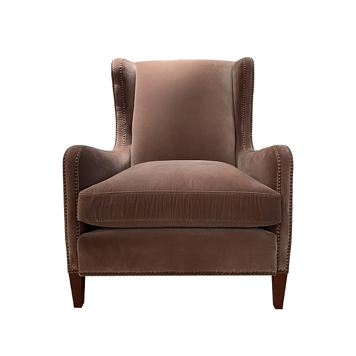 Подлокотник оформлен гвоздиками в цвете - бронза. Ножки выполнены из дерева в цвете - орех.