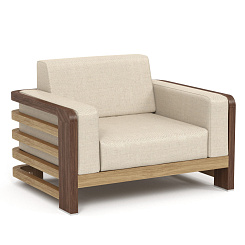 - кресло на солидной деревянной основе со съемными подушками – оно может использоваться дома или под открытым небом благодаря долговечным материалам с особой защитой;