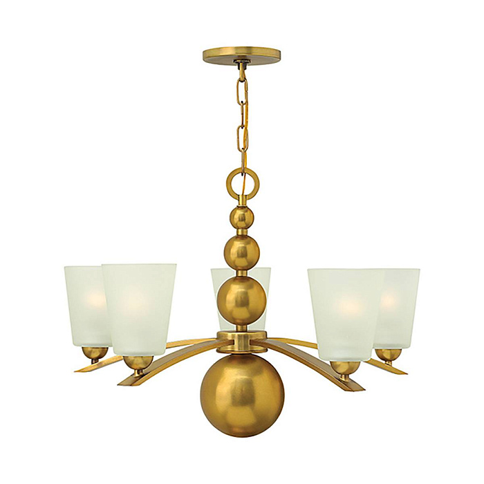 Люстра бренда Hinkley в стиле mid-century modern. Увеличивающиеся в размере шары, свисающие с верхней петли, образуют элегантную органичную центральную колонну и придают светильнику Zelda экстравагантный силуэт. На основании с гладкими прямоугольными выгнутыми поперечинами на полусферах крепятся плафоны из матового стекла, добавляя налет винтажности. Люстра выполнена из металла в цвете «латунь». Матовые белые плафоны создают мягкое, расслабленное освещение. Минимальная высота светильника - 56 см, максимальная высота светильника с цепью - 206 см.