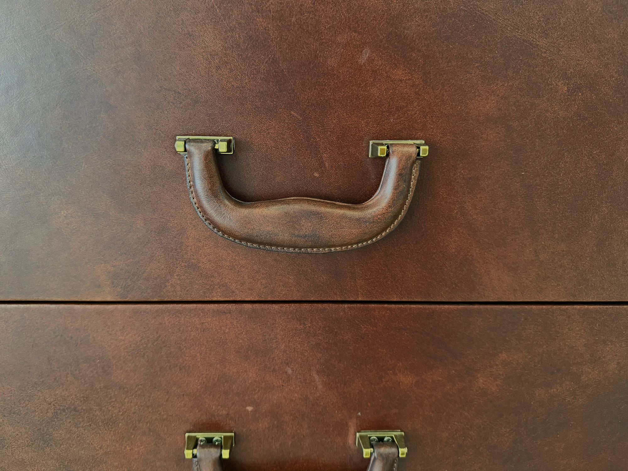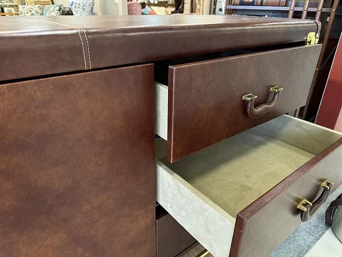 Кожаный комод с ящиками - это стильное и функциональное дополнение к любому интерьеру. Он придаст Вашему дому изысканность и элегантность. Комод выполнен из дерева и обит  высококачественной аргентинской кожей с эффектом старения, что делает его не только красивым, но и прочным, и долговечным. Кожаные комоды легко вписываются в различные стили интерьера – от классического до современного эклектичного. Комод оснащен четырьмя выдвижными ящиками.
