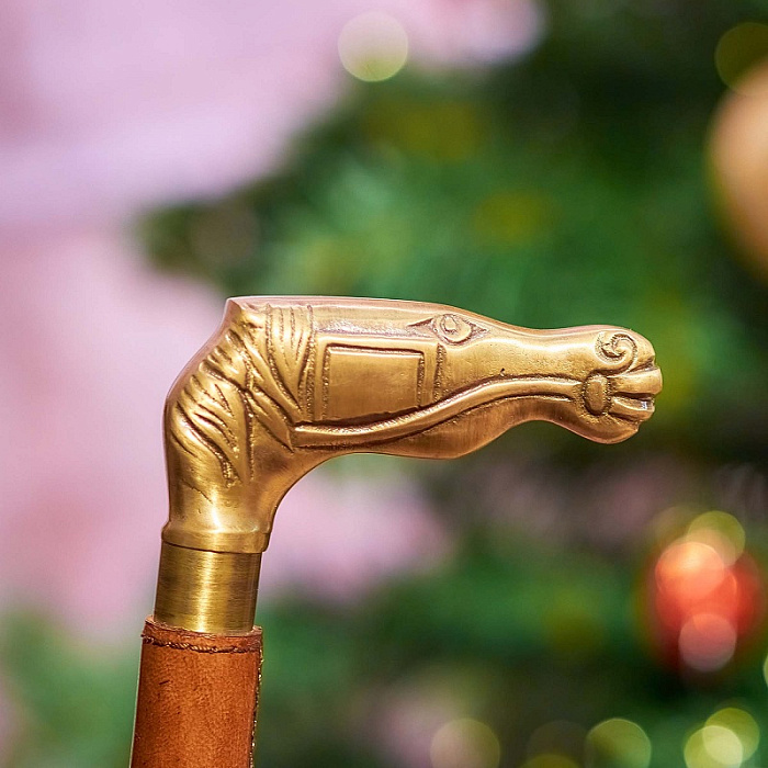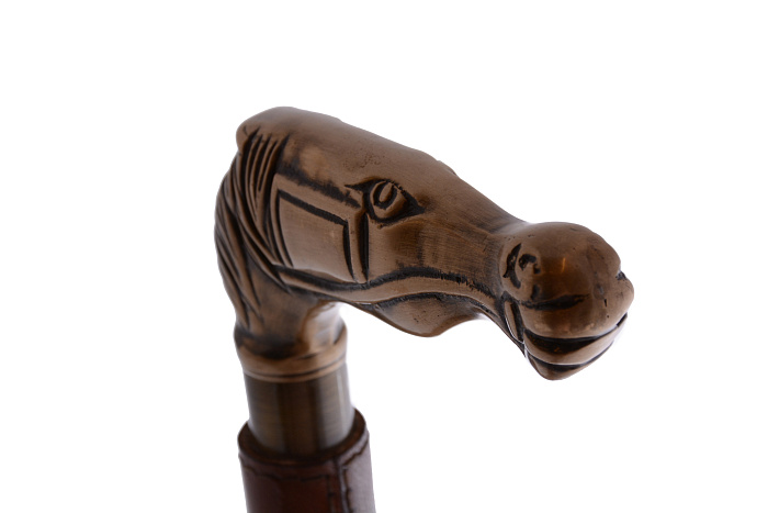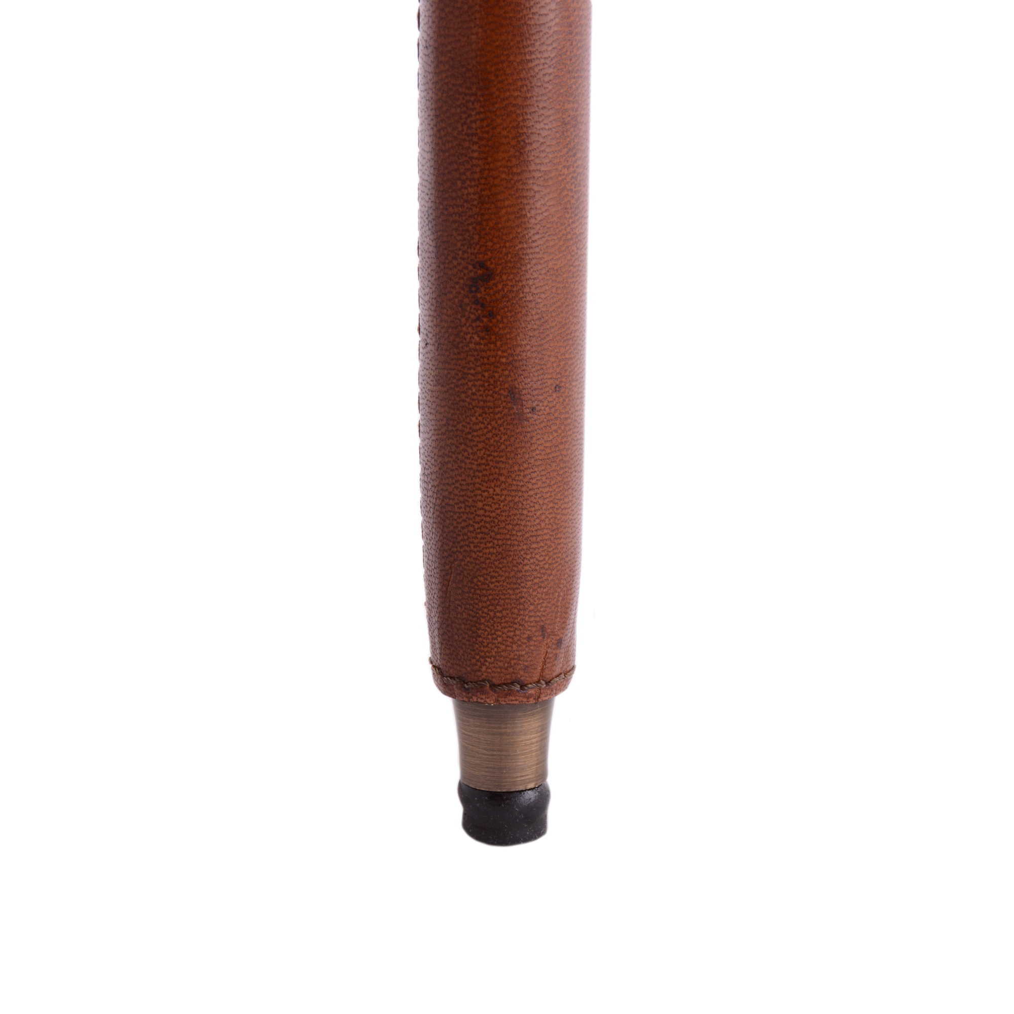 Трость выполнена из металла и декорирована натуральной кожей. Этот функциональный и стильный аксессуар станет прекрасным подарком настоящему джентльмену.
