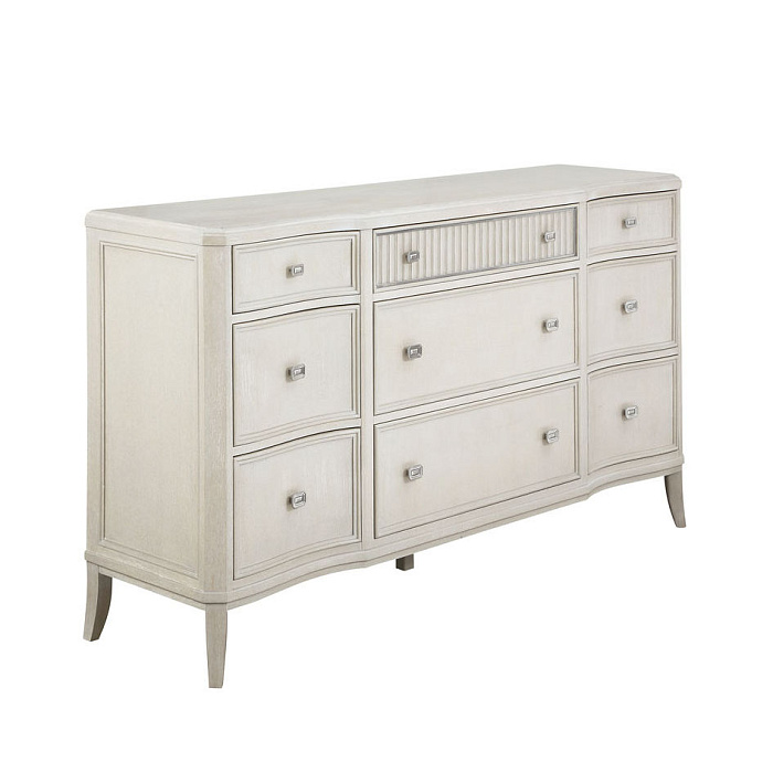 Комод "Ла Скала" представляет собой идеальное сочетание сдержанности и гламура. Изготовлен из массива каучукового дерева и шпона ясеня. Декорирован рифлеными деталями с никелированной металлической окантовкой.