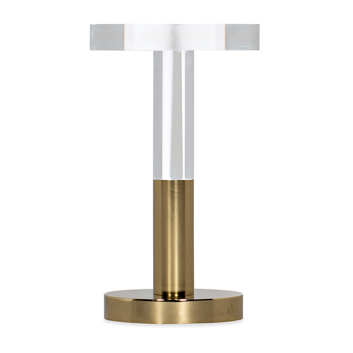 Столик имеет компактную, круглую форму. Золотое металлическое основание выгодно контрастирует с прозрачной верхней частью из акрила.