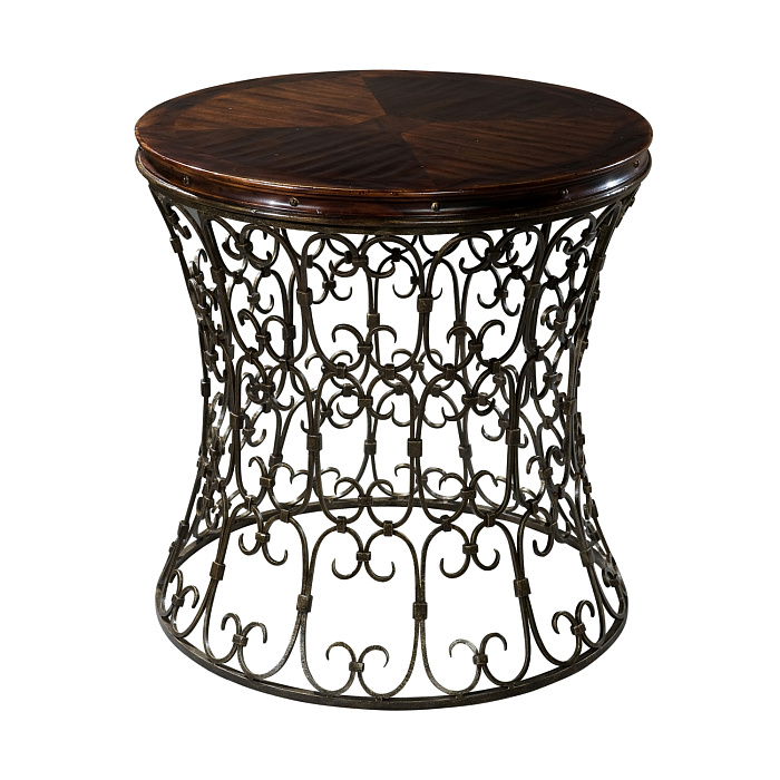 Столик в стиле ренессанс станет прекрасным дополнением в интерьере. Столешница выполнена из красного дерева. Ажурная основа столика выкована вручную из железа в виде зеркального изображения буквы "С".