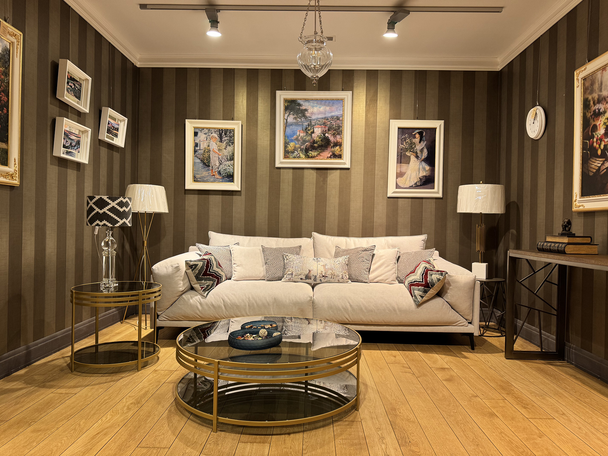 Столик "Риенцо" из металла и стекла – само воплощение изящества и функциональности. Строгие линии металлического каркаса с высококачественным покрытием в цвете "латунь" обрамляют круглую столешницу, выполненную из закаленного стекла, которая, подобно озеру, отражает свет и создает ощущение простора.
