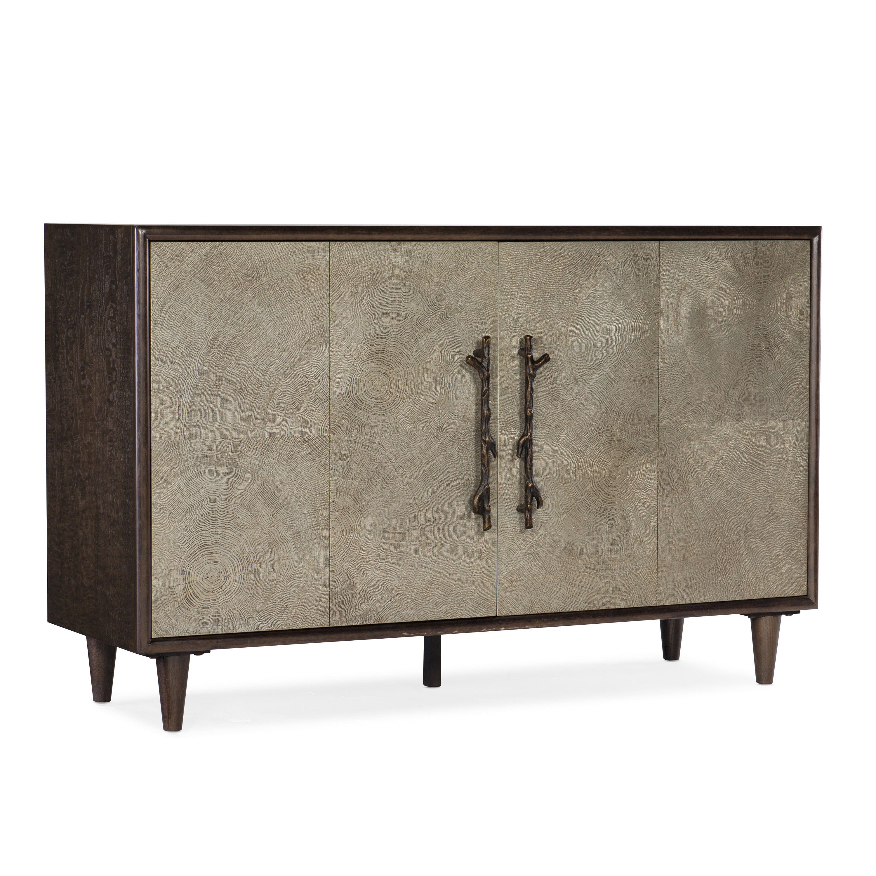 Тумба выполнена из массива твердых пород дерева. Фасады декорированы шпоном ясеня Тамо, известного своей необычной волнистой текстурой и крапчатыми завитковыми узорами, а также тангенциально - торцовым шпоном Белого Дуба. Строгое сочетание насыщенного коричневого тона с серебристым шпоном фасадов, дополненное искусно выполненной фурнитурой, завершает простой и в то же время нарядный образ в экологическом стиле. За распашными дверками, открывающимися нажатием, расположена одна регулируемая полка.