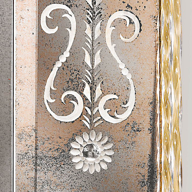 Зеркала в венецианском стиле - гордость Arte Veneziana. Есть несколько признаков, которые отличают венецианское зеркало. Наиболее известными сюжетами являются красивые гравюры с цветами или богатыми мифологическими и буколическими сценами.