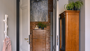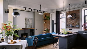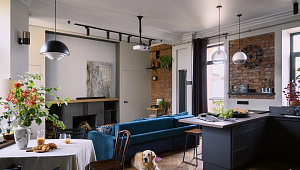 Это квартира основательницы студии Black Wall Евгении Чучариной. Она находится в старом доме Петербурга, где сохранилось очарование жизни в историческом центре: высокие потолки, большие окна во двор-колодец, вид на крыши города, дровяной камин. Дизайнеры не придерживались какого-то одного стиля, не были ограничены во времени и благодаря этому получилась очень эклектичная квартира с интересными деталями.