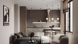По стилистике заказчики попросили сделать интерьер в стиле джапанди. Это смешение двух направлений: японского минимализма и скандинавского дизайна. Здесь в каждой детали ощущается функциональность и визуальная чистота. Звучит как будто обычно, но нюанс в цветах, фактурах и форме мебели. Цвета в основном пастельные, теплые, достаточно сложные и глубокие. Фактуры тоже интересные - натуральный камень, либо дерево и металл.